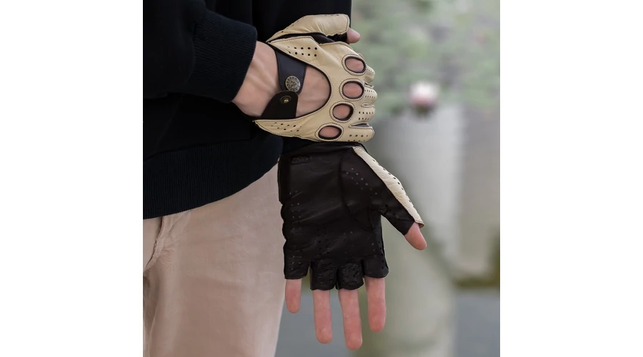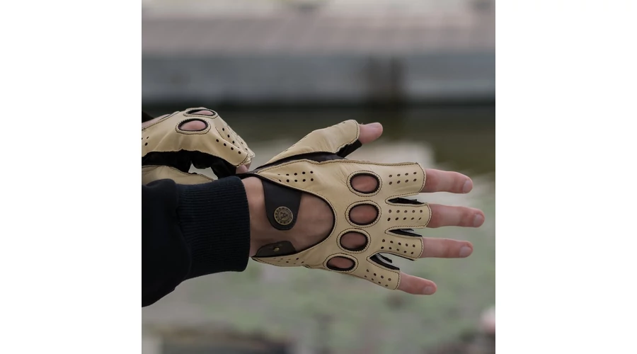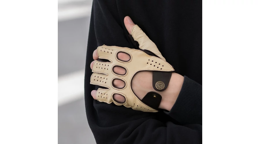 Men's hairsheep leather fingerless gloves BEIGE-BROWN