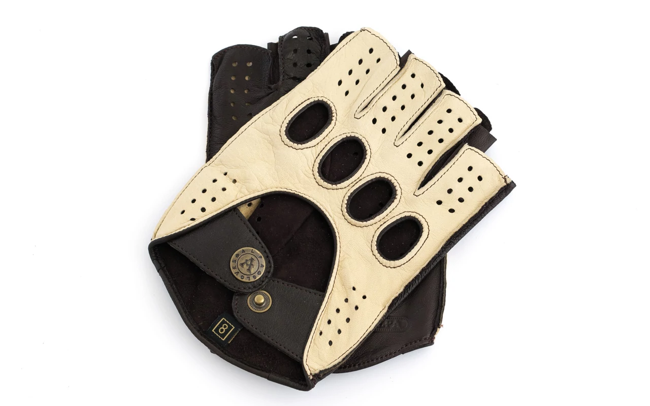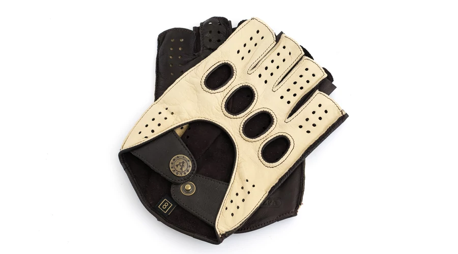 DETAILS: Alpa Gloves dome stud fastener, burned-in logo at the cuff, knuckle holes, perforated detailing